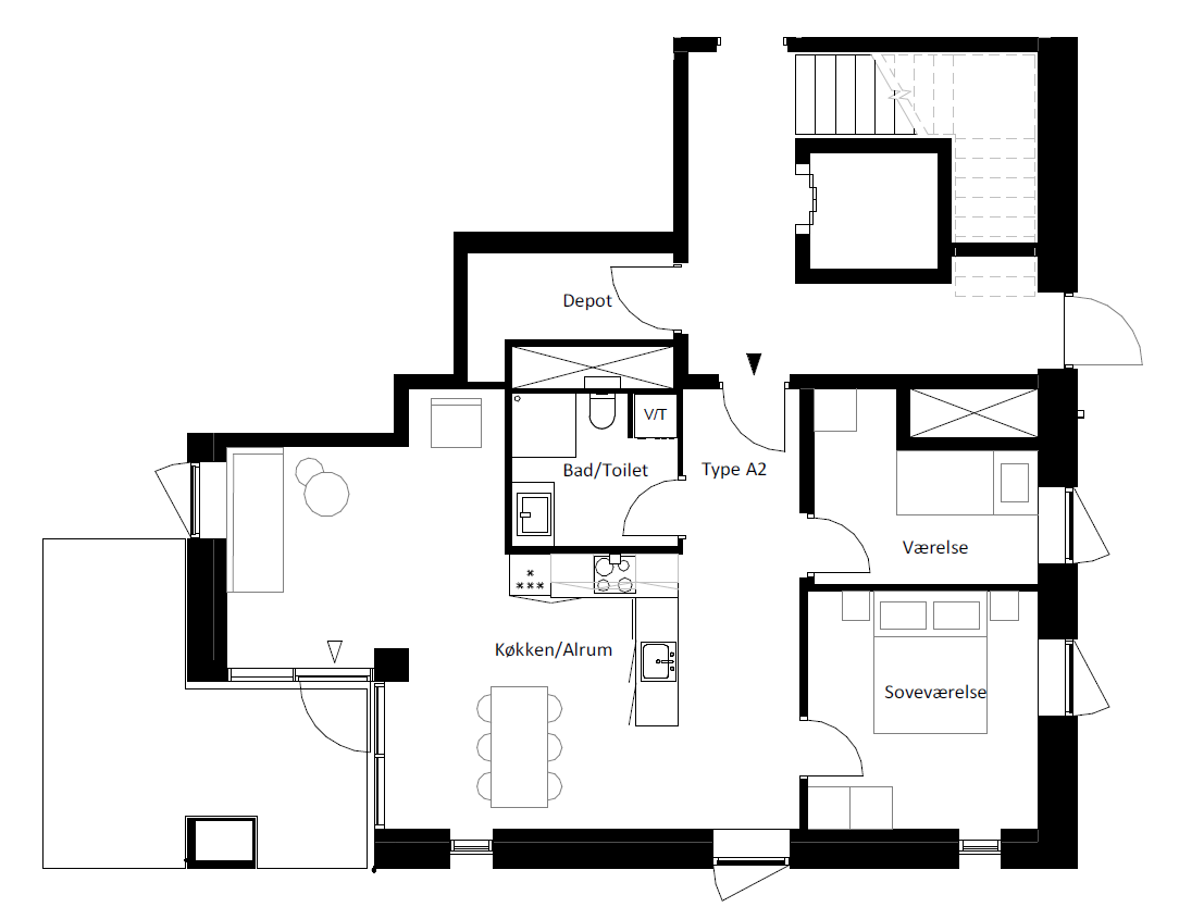 3 værelses lejlighed på 82 m2 / BBR areal 90 m2 og med syd/vest vendt terrasse på 15 m2.